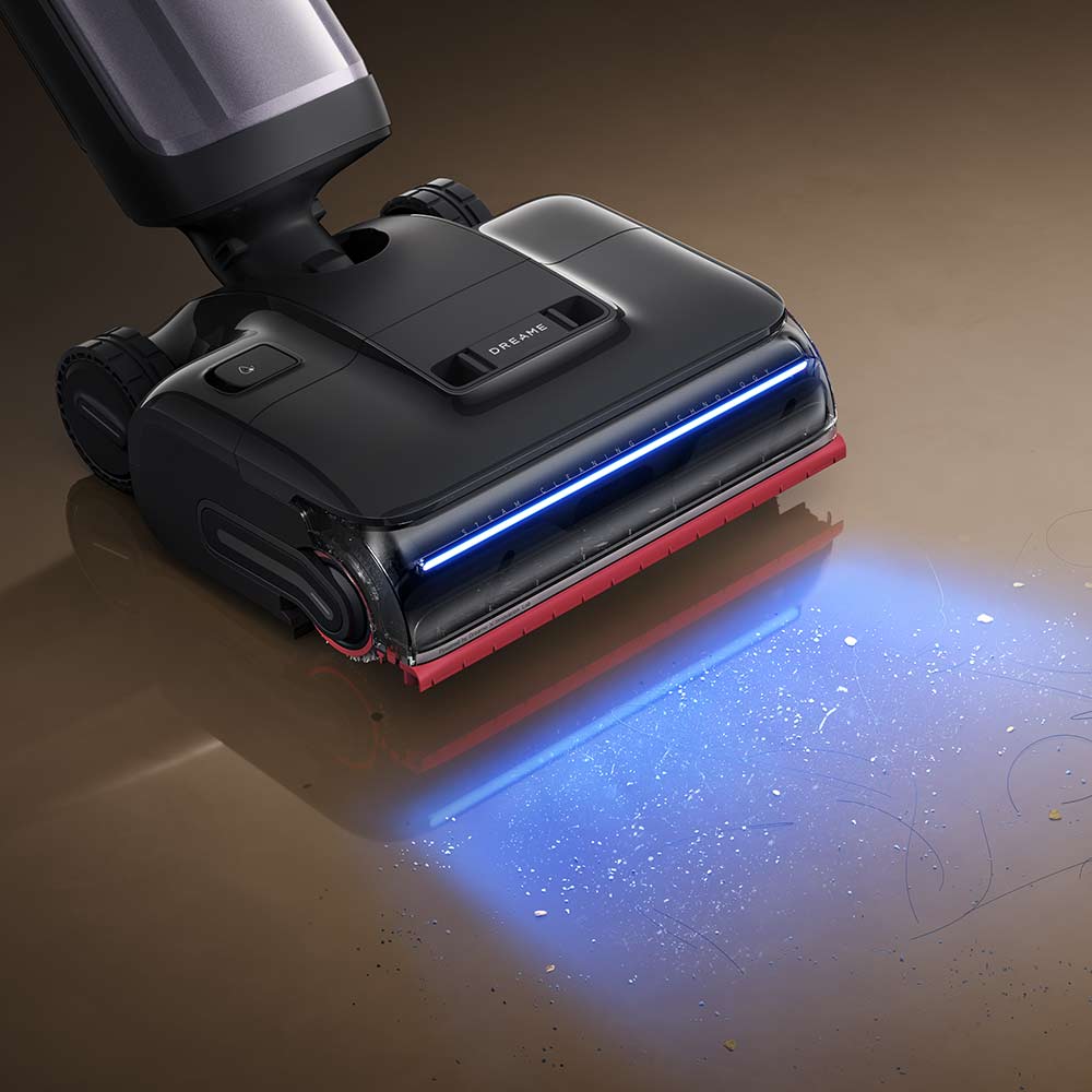 ה-H16 Pro Steam מצויד בתאורה כחולה מתקדמת בראש המברשת, לחשיפה אופטית מושלמת של לכלוך שמתחבא בתאורה רגילה